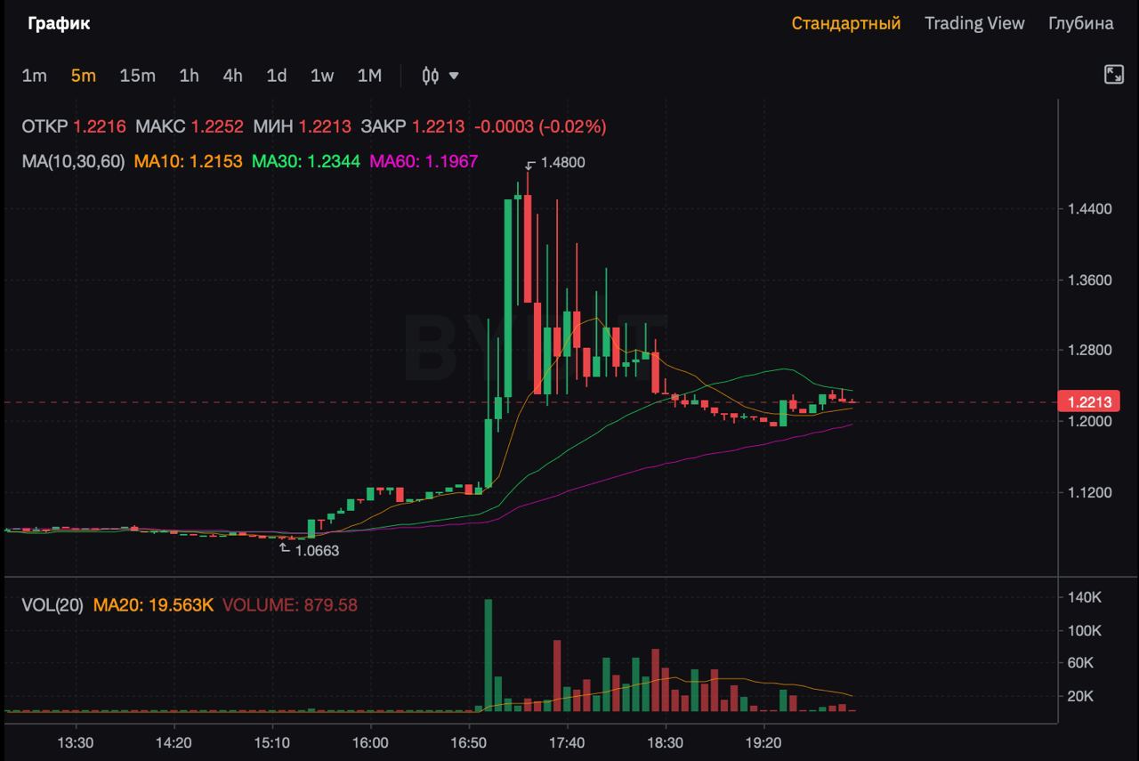 Сама арбитражная ситуация длилась в районе полутора часов, что не сказать что мало, а достаточно долго. И плюсом ко всему, данную монету можно быдл купить на Binance, Huobi, Gate… (Первый скрин биржа Binance), а продать на ByBit (второй скрин) с наценкой 10-20%. !