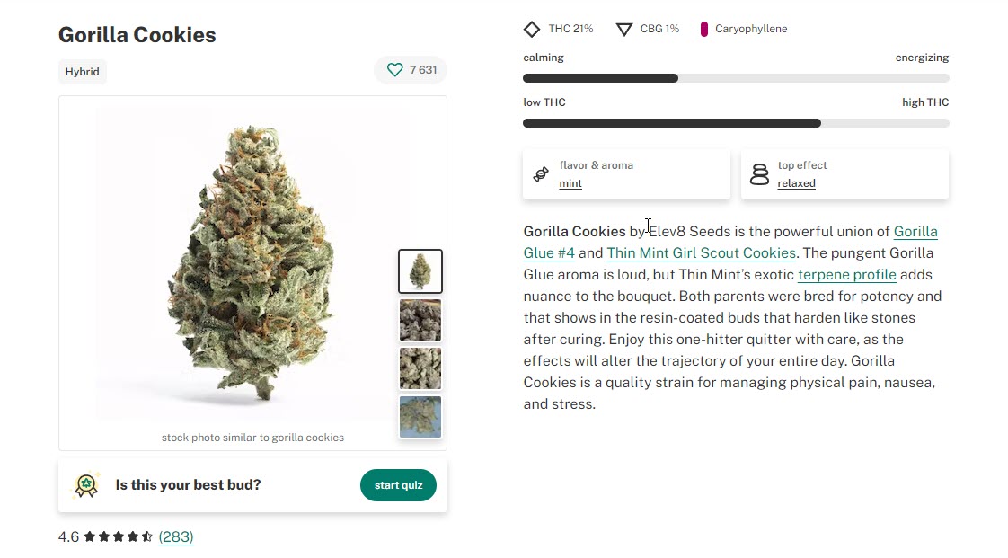 Помимо внешнего вида, истинная привлекательность сорта Gorilla Cookies заключается во вкусе и аромате . Лучшее слово для описания запаха Gorilla Cookies — «острый». На первый план вышел вкус мяты . Этот бутон имеет пряный, но сладкий мятно-травяной вкус с нотками орехового печенья на выдохе.