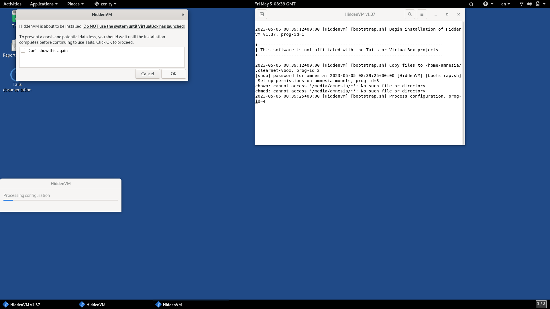 HiddenVM - это простое, бесплатное приложениес открытым исходным кодом, которое позволяет запускать VirtualBox на операционной системе Tails.