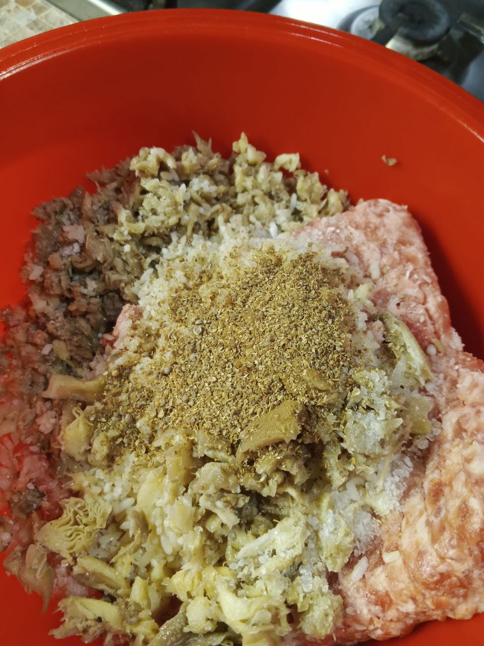 Сюда же добавляем свино-говяжий фарш